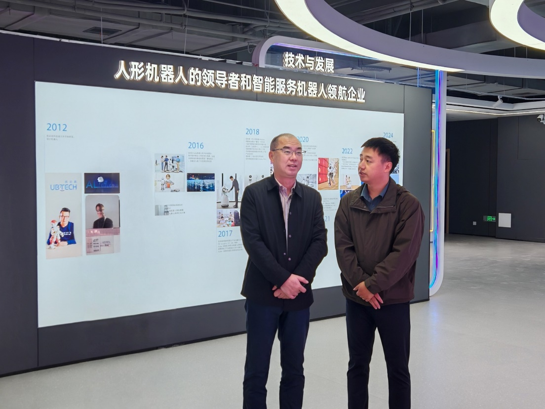 在优必选科技股份有限公司九江人工智能产业园,金小军一行深入了解智能机器人行业生态、应用场景、人才需求,结合我校专业布局,与企业负责人就学生实习、毕业生就业、产业学院建设等进行了深入交流。企业负责人表示随着智能机器人行业井喷,优必选九江人工智能产业园上下游企业需要大量的具有扎实专业技能和创新能力的人才,希望与学校开展多模态校企合作,共同培养适应行业发展的高技能人才。